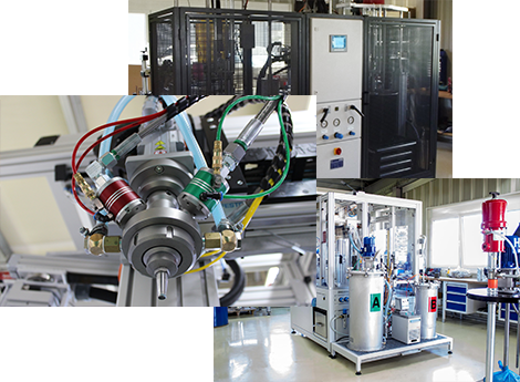 Multikomponentensysteme zum Mischen von Rezepturen. Z.B. Gleitlackrezepturen für die Beschichtung von Gummidichtungen im automotive und aerospace Bereich. Vakuumdosieranlagen für Vergussanwendungen und Prototypenherstellung. Einzelkammern, Durchlaufsysteme mit Ein und Ausschleusen von Werkstückträgern, integrierten Achssystemen, u.v.m. Je nach Anwendung kommen dabei verschiedenste Misch- und Dosiersysteme zum Einsatz. Diese umfassen im wesentlichen Rühren- Homogenisieren, dynamische (angetriebene) Vermischung und statische Vermischung. Bei der Materialförderung überwiegend: Kolbenpumpen, Kolben- Volumendosierer, Membranpumpen, Zahnradpumpen und Schneckenpumpen.