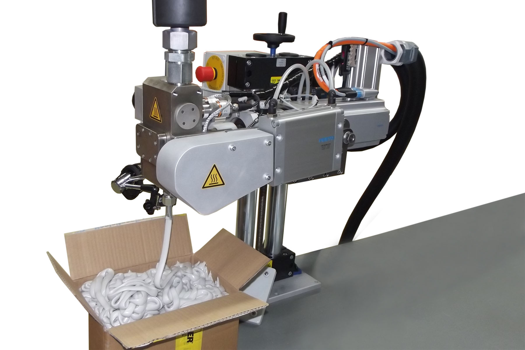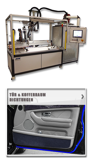 Dichtungen aus Silikon, PU, PU-Schaum, Silikonschaum auf Gehäuse aus (Alu) Druckguss, Kunststoffspritzguss, tiefgezogenen Blechen, usw. Schaumdichtungen auf Schaltschranktüren und Elektro-Gehäusen. Flüssigauftrag von Dichtstoffen für Gehäuseabdichtungen, z.B. Ölwannen, Getriebehälften, im Motorenbau, Wasserpumpen, Thermostatgehäuse, u.v.m. Klebstoffauftrag bei teilautomatisierten oder händischen Fügeprozessen wie z.B.: Gehäuseverklebungen, Steckern, Verbundstoffen, im Automobilbau für Karosserieverklebungen bzw. auch dem Einkleben von Scheiben, im Aerospace-Sektor für die Verklebung von Rumpfbauteilen, bei Wohnmobilen und im Sonderfahrzeugbau, u.v.m. Das Vergießen von elektronischen Bauteilen / Baugruppen, Transformatoren; Verkleben elektrischer Bauteile z.B. Kondensatoren, usw. Vergießen zum Schutz vor Beschädigung oder auch dem Zugriff auf geschützte Bereiche (Digitalreciever, Bausteine mit Decodierfunktion usw.). Verguss zum Schutz vor Vibrationen, gegen das Eindringen von Feuchtigkeit oder auch zur besseren Wärmeableitung, usw. (Silikon) Beschichten von hochbelasteten Leiterplatten, bzw. beim Einsatz unter aggressiven Umgebungseinflüssen. Abdichtung von Steckern, Lampensockeln, Steckkontakten und Kabeln um das Eindringen von Feuchtigkeit zu verhindern. Dichtstoffeintrag, bzw. Butylieren von Dichtungen-Dichtungssystemen im Fahrzeugbereich. (“in Line” an der Extrusionslinie oder auch an ferig konfektionierten Bauteilen, Scheibenrahmen, Kofferraum und Türprofilen) Verklebungen an Gummiprofilen (z.B. Abdeckprofile usw.); Gleitlackbeschichtung, u.v.m. Füllstandsüberwachtes, automatisches Befüllen von Tränkebädern für die Trafo- Spulenfertigung, Laminierprozesse (Windkraftanlagen, GFK-Bauteile, GFK-Behälterbau, CFK-Bauteile, Kohlefaserverbundbauteile, Seekabelfertigung), u.v.m.