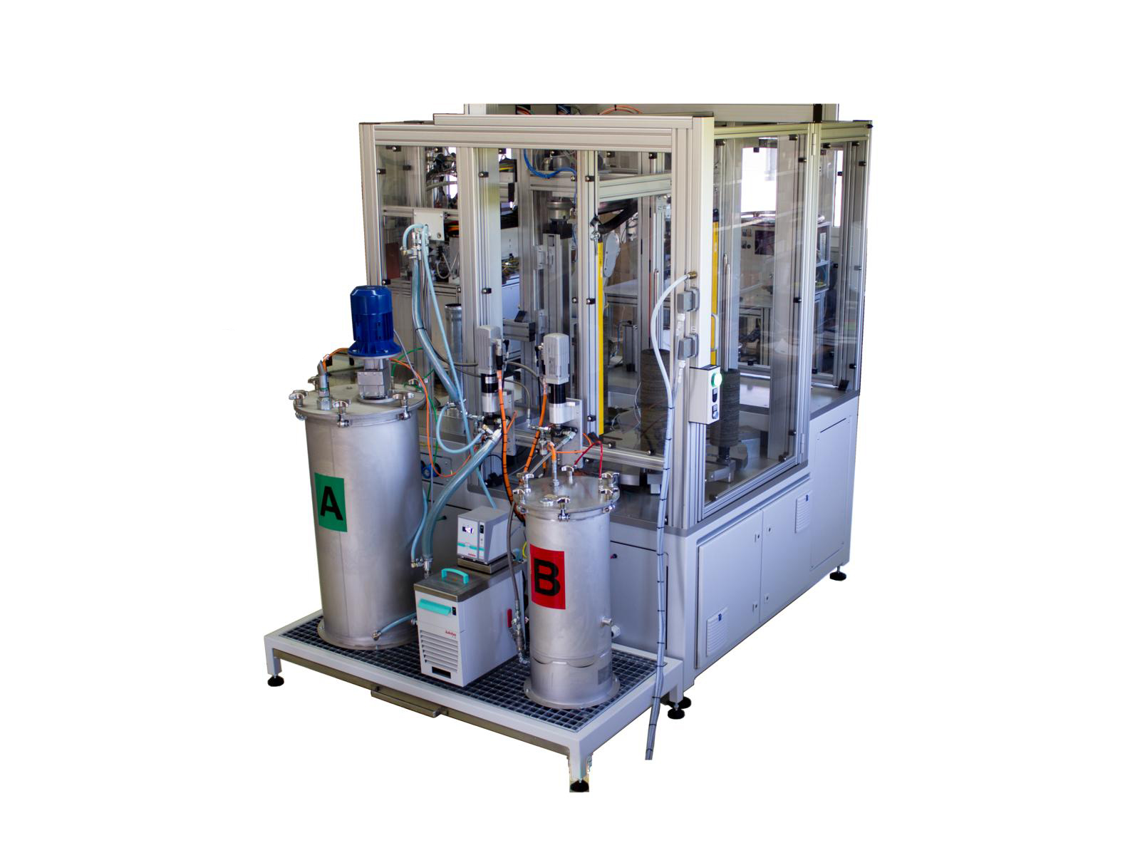 Multikomponentensysteme zum Mischen von Rezepturen. Z.B. Gleitlackrezepturen für die Beschichtung von Gummidichtungen im automotive und aerospace Bereich. Vakuumdosieranlagen für Vergussanwendungen und Prototypenherstellung. Einzelkammern, Durchlaufsysteme mit Ein und Ausschleusen von Werkstückträgern, integrierten Achssystemen, u.v.m. Je nach Anwendung kommen dabei verschiedenste Misch- und Dosiersysteme zum Einsatz. Diese umfassen im wesentlichen Rühren- Homogenisieren, dynamische (angetriebene) Vermischung und statische Vermischung. Bei der Materialförderung überwiegend: Kolbenpumpen, Kolben- Volumendosierer, Membranpumpen, Zahnradpumpen und Schneckenpumpen.