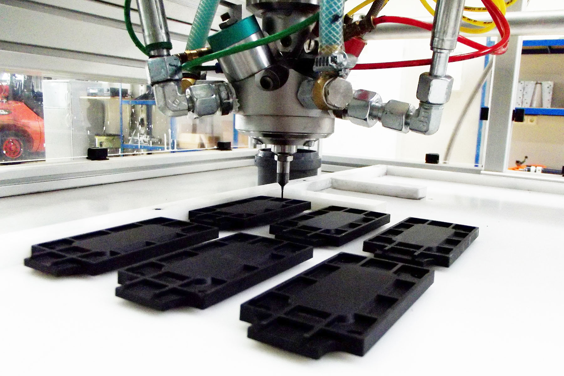 Wir bieten Ihnen für Ihre Teile unsere Lohnfertigung an oder entwickeln eine komplette Maschine für Ihr Vorhaben - gerne auch Vollautomatisiert als NC, CNC oder mit Roboter. Mögliche Anwendungsbereiche sind das Vergießen von Elektroplatinen, Gehäusen, Kontur-Dosieren von z.B. Tür-Dichtungen im Automovie oder Aerospace Bereich, Verkleben von Materialien auf 1k oder 2k Basis. Wir setzen auf neuste Technologie, Laser-Sensoren und Roboter und sind ein DIN EN ISO 9001 zertifizierter Betrieb. Viele unserer Sondermaschinen erreichen bisher konkurrenzlose Geschwindigkeiten, damit Sie Ihre Teile in hoher Stückzahl in kürzester Zeit mit unseren Maschinen bearbeiten können. Zudem sind unsere Anlagen mit einem Selbstreinigungsmechanismus versehen, was die Lebensdauer der Maschine deutlich erhöht und die Wartungskosten gering hält.